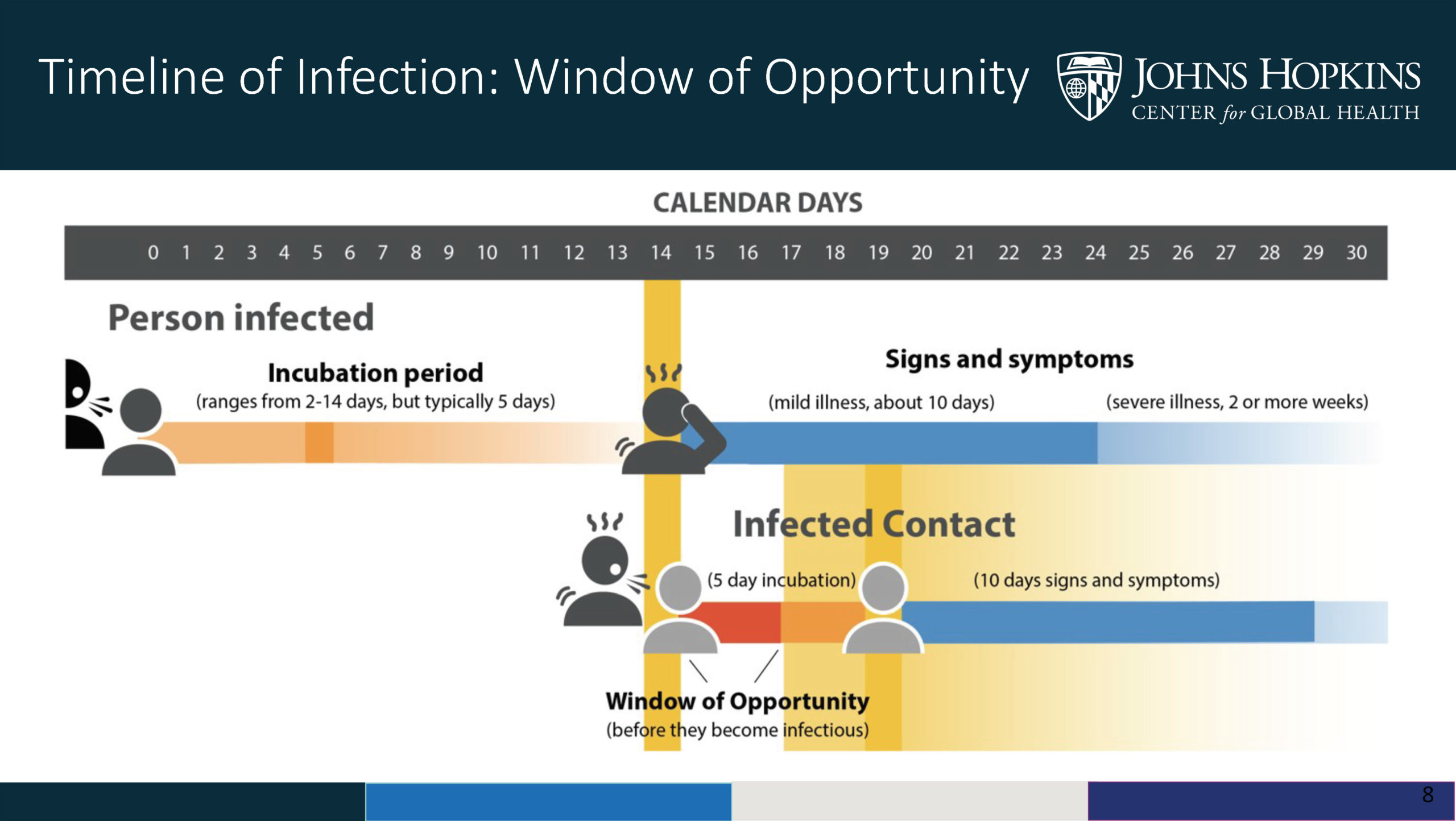 Local health departments aim to contact positive individuals within 24 hours of receiving a positive lab report. Schools should be conducting daily health screenings, including asking whether the child/staff has been in contact with a person who has tested positive.